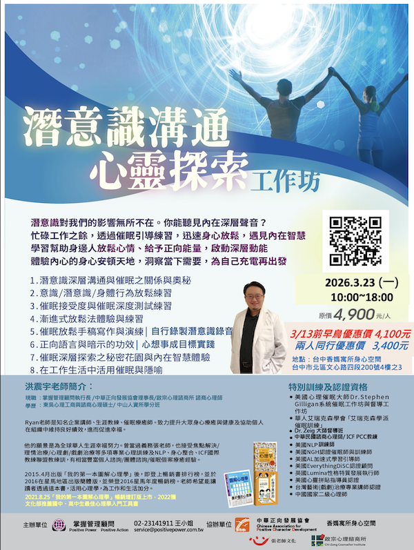 協辦單位:中華正向發展協會、張老師文化、啟宗心理諮商所、香媽寓所身心空間